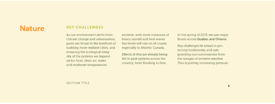 One of the biggest challenges in this project was finding the right balance between presenting key information clearly and creating a visually engaging, easy to read layout. Adhering to the brand guidelines added both structure and constraints, which at times helped guide decisions but also limited creative flexibility. I overcame these challenges by gathering feedback from peers and stepping back to critically assess each design element ensuring every choice had a clear purpose. With more time, I would refine the graphics and fine tune certain page layouts to further unify the piece. Overall, I’m proud of the final outcome, and this project significantly deepened my understanding of large-scale document layout design.