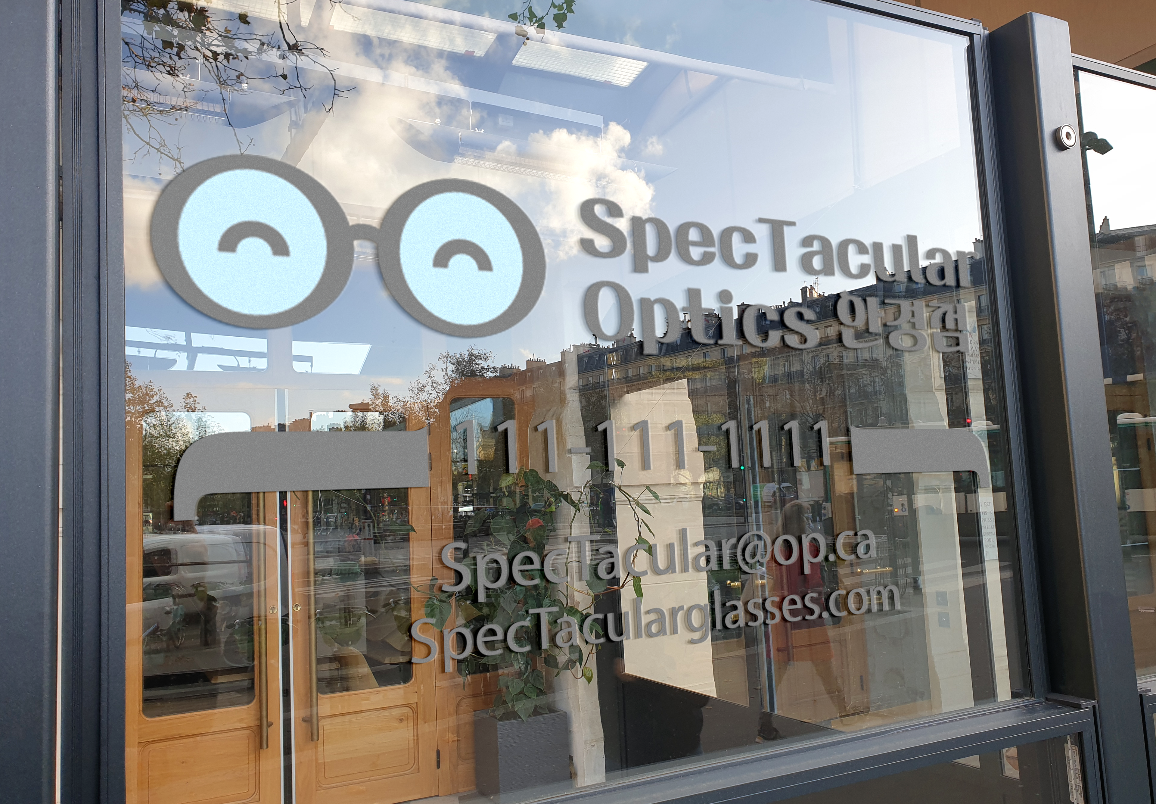 The top left letter head prominently features the SpecTacular Optics logo, which includes playful eyeglasses with eyes, communicating friendliness and clarity key elements in optical care. The logo includes the Korean translation (안경점 meaning Optician) to emphasize the brand’s bilingual accessibility.